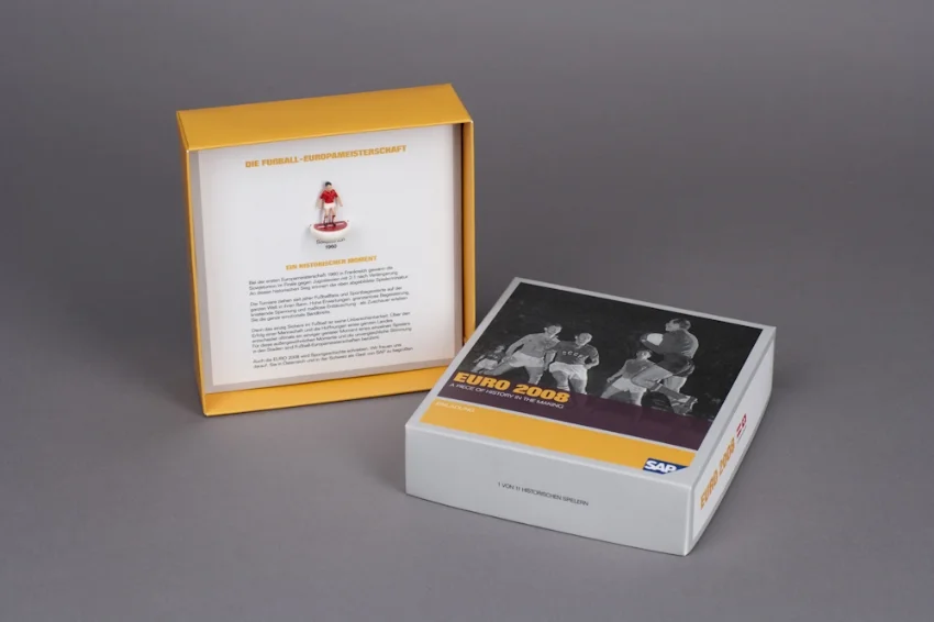 Created a 2 part invitation pack which when combined resulted in a mock Subuteo game with SAP branded pitch, nationality branded players and a leaflet featuring magic moments from the tournament’s history.